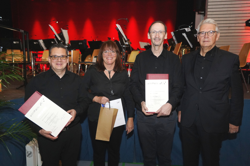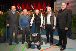 Mit dem großen Blasorchester geht es anschließend in die Vereinigten Staaten. Unter der Leitung von Philipp Zink kredenzen die mehr als 50 Musiker ikonische Melodien, vor allem aus Filmen und Musicals: Stücke, die längst Generationen verbinden. Mit Finesse transportieren die Musiker die verschiedenen Stimmungen, die im „Chorale and Shaker Dance“ stecken, mal temporeich und fordernd, mal zurückhaltend und nachdenklich. Die jubilierende Fanfare gibt es ebenso zu hören wie das dumpfe Brummen und das leise Flüstern. Mit Melodien von Ennio Morricone öffnet sich der Wilde Westen, mit Ausschnitten der West Side Story entsteht ein Kaleidoskop an Farben und Formen, gefühlvolle Balladen und temperamentvolle Rhythmen inklusive. Geschickt lassen die Musiker bei einer Hommage an den Krieg der Sterne die Leitmotive in immer neuen Schattierungen auftauchen. Das Publikum dankt nicht nur ihnen mit tosendem Beifall, sondern auch jenen, die die beiden Musikvereine seit Jahrzehnten voranbringen. Göbrichen ehrt drei langjährige Musiker, darunter Kassier Rolf Elsäßer, der seit 50 Jahren musiziert. Bauschlott zeichnet die Gründungsmitglieder Ewald und Helmut Fuchs, Wilhelm Stößer, Werner Scheuble und Helmut Baumann für 70 Jahre Vereinstreue aus. – Nico Roller